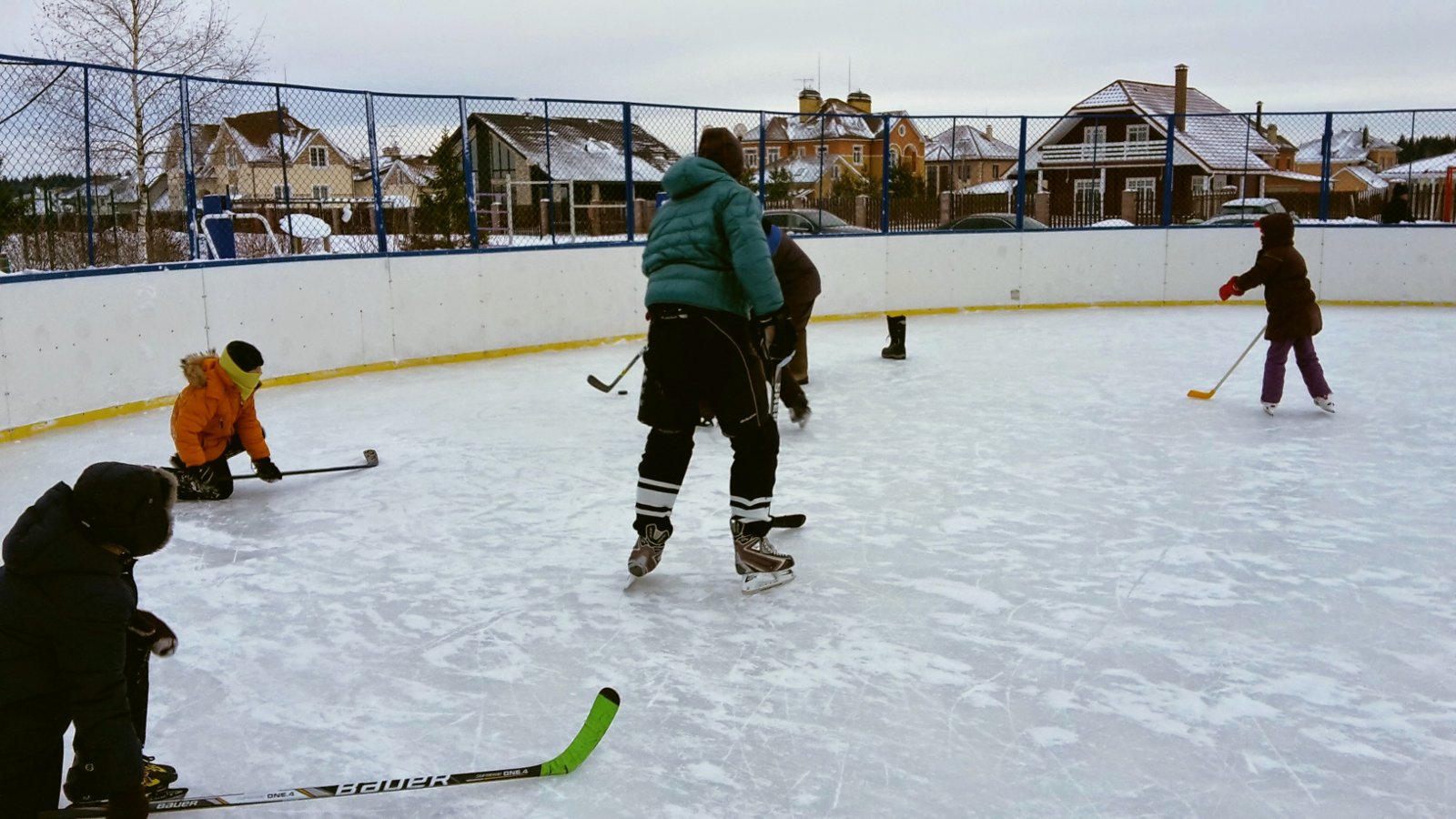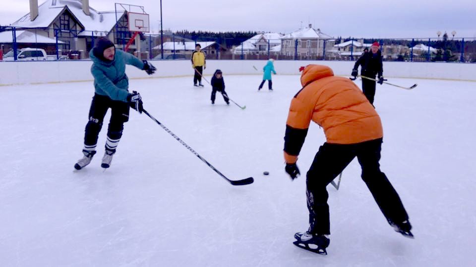 Каждый год мы заливаем площадку льдом, чтобы покататься на коньках.